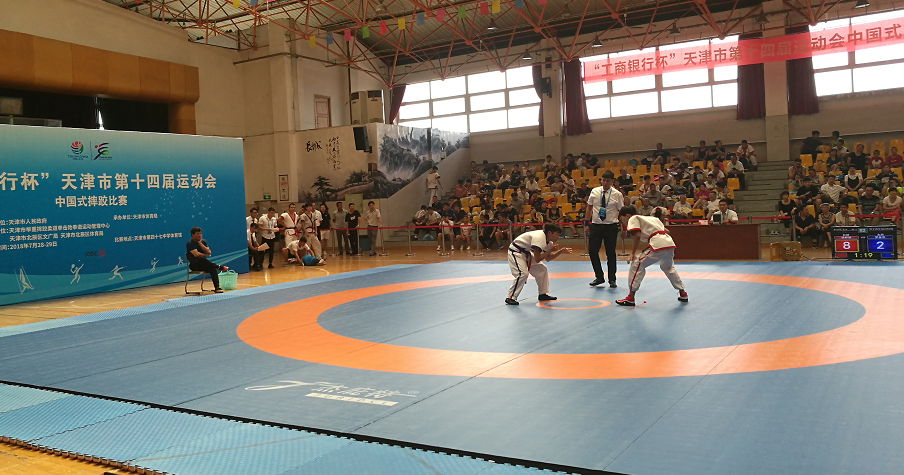 天津市第十四届运动会中国式摔跤比赛       2018年7月29日,天津市第十四届运动会中国式摔跤比赛在第四十七中学体育馆举行,比赛共有来自各区的9支代表队的148名选手参加。