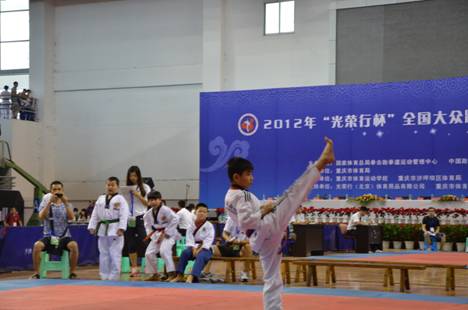 2012全国大众跆拳道锦标赛        2012年7月27日至8月1日在重庆市沙坪坝区体育馆举行.