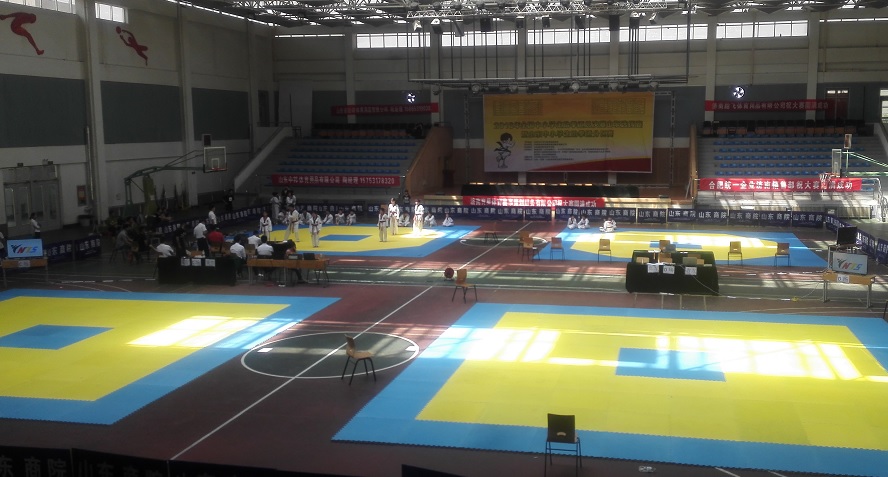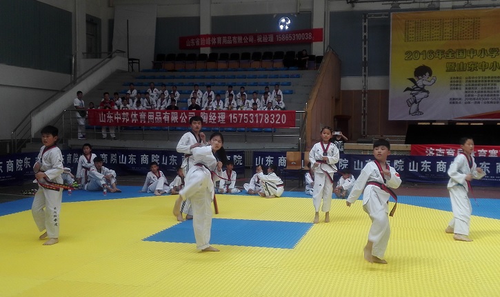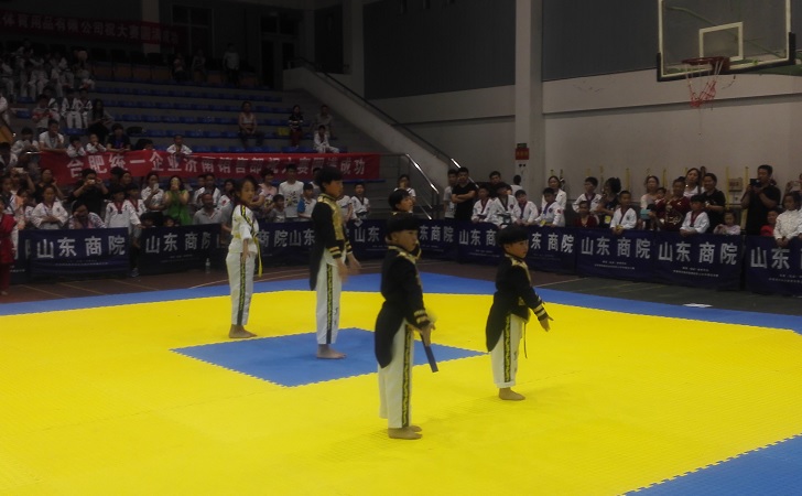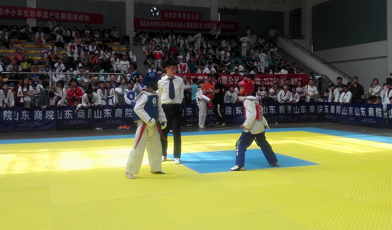 2016全国中小学跆拳道总决赛山东选拔赛         5月1日,2016全国中小学跆拳道总决赛山东选拔赛在山东商业职业技术学院体育馆盛大开幕,来自全省六十三个代表队约一千三百余名小运动员参加了此次比赛,经过两天激烈的角逐,共产生百余块金牌。