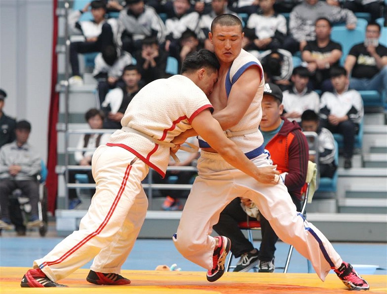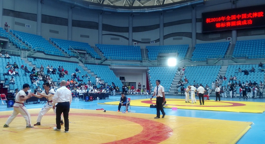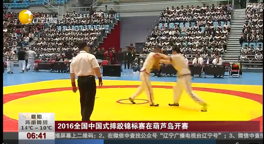 2016年全国中国式摔跤锦标赛      “2016年全国中国式摔跤锦标赛”于5月13日上午在辽宁葫芦岛兴城体育馆开幕,在三天的赛程里,来自全国51支队伍的467名摔跤运动员将为滨城百姓带来一场力量与技艺相互碰撞的“盛宴”。