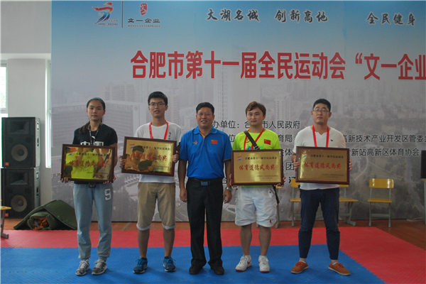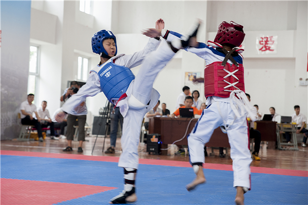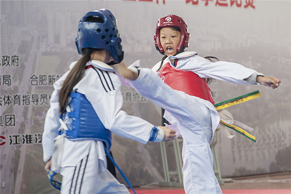 肥市第十一届全民运动会跆拳道比赛        8月21日,合肥市第十一届全民运动会“文一企业杯”跆拳道比赛在高新区淮合花园小学体育馆开幕,12支代表队伍近400名跆拳道小将参加本次赛事。赛场内人头攒动,掌声雷动。